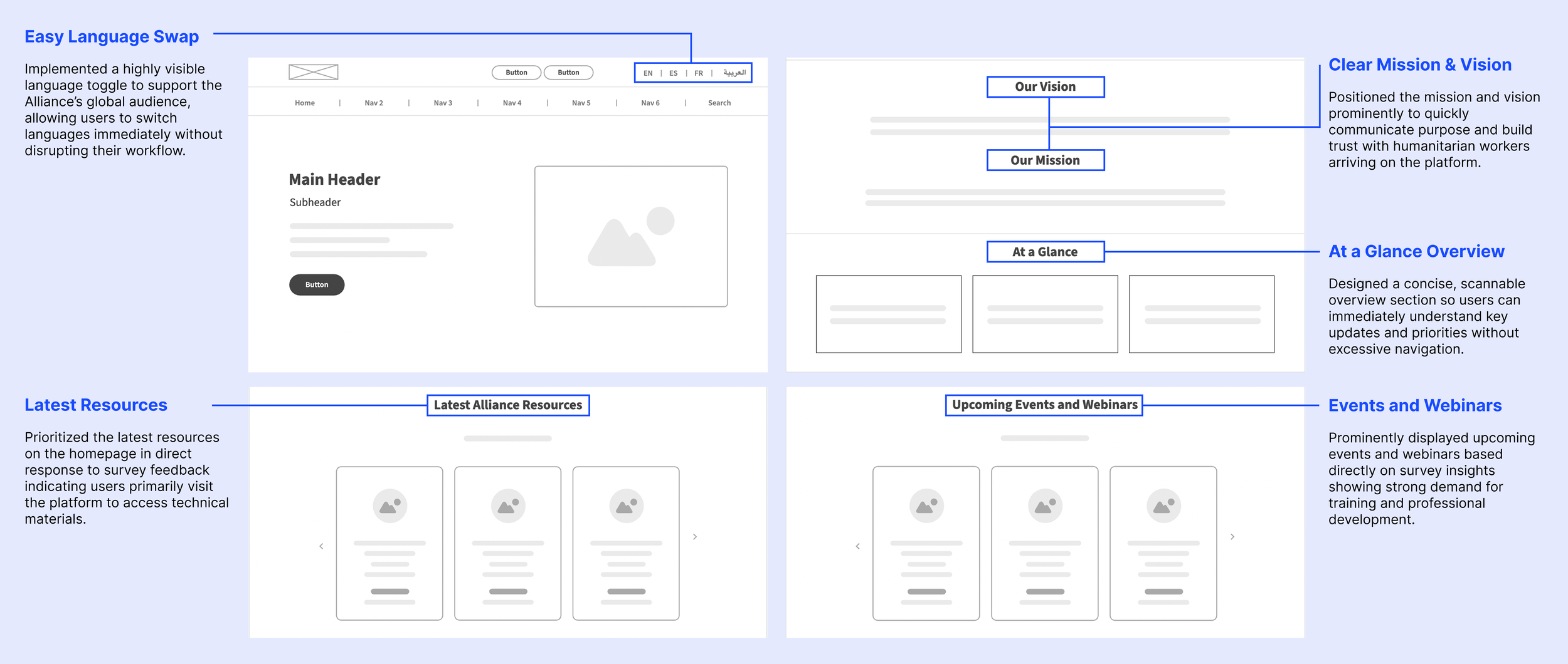 • Simplified homepage structure to reduce cognitive load for diverse audiences.